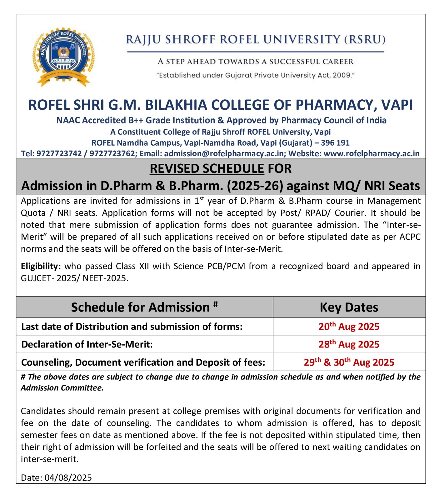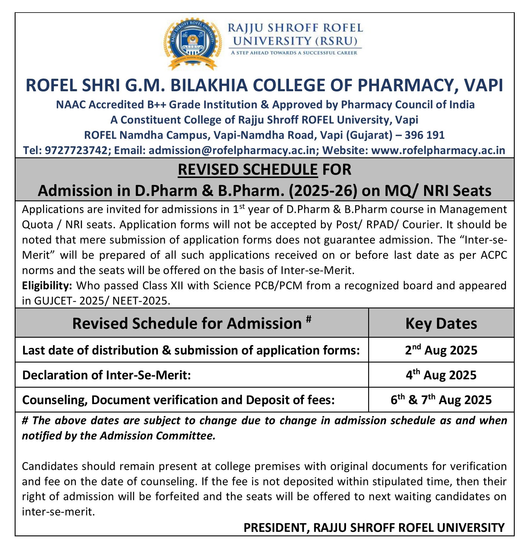 Admission Procedure in Management Quota Seats of D.Pharm Program